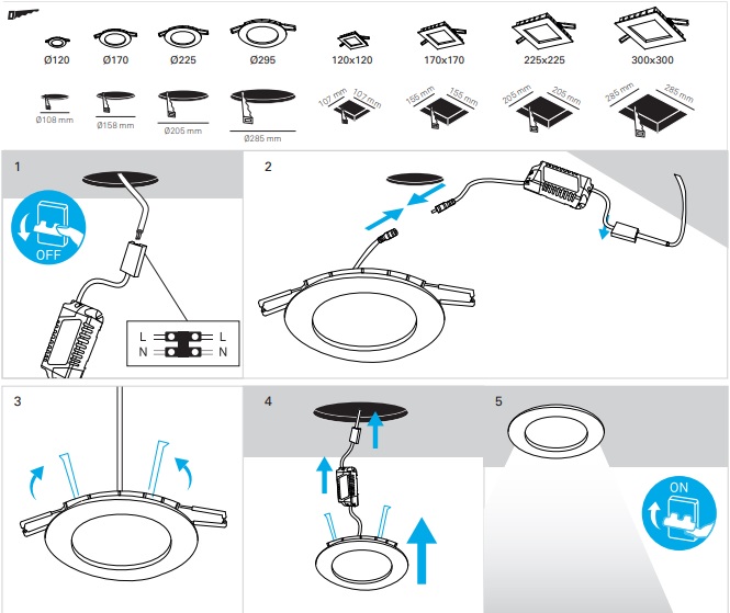 Vgradni panel LED FORLIGHT EASY square 10W 3000K 1150lm LED driver BE Kvadratni 170x170mm IP23 220-240V