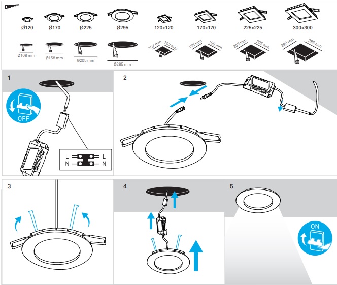 Vgradni panel LED FORLIGHT EASY LED TC-0148-BLA ima moč 10W, toplo belo barvo svetlobe 3000K svetlobni tok 1150 lumnov, LED driver, je bele barve, okrogle oblike, premera 170 mm in ima zaščito IP23.